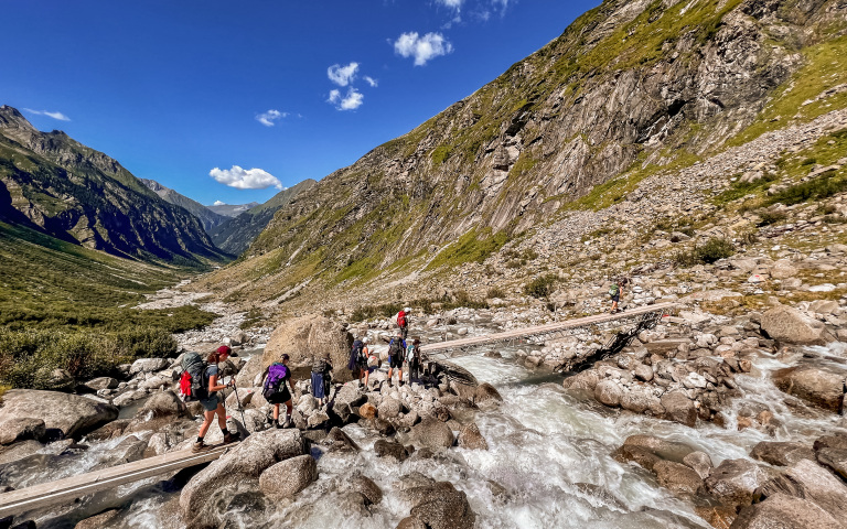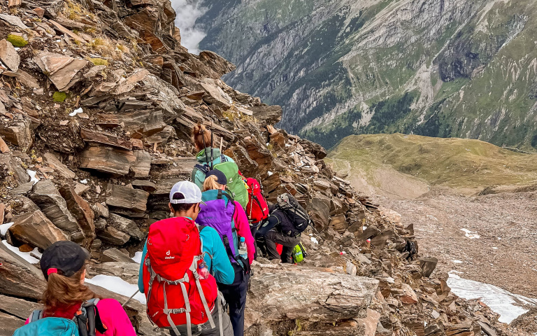 Die Zillertaler Runde bzw. der Berliner Höhenweg führt durch das Herz des Hochgebirgs-Naturparks Zillertaler Alpen - von der Gamshütte bis zur Karl-von-Edel-Hütte. Es erwarten uns gewaltige Ausblicke in die vergletscherte Hochgebirgswelt und ebenso wunderbare Einblicke in die Naturschönheiten dieser hochalpinen Landschaft. Der Höhenweg ist ein anspruchsvoller Weg für erfahrene Bergwanderer*innen. Er führt uns fast ausnahmslos durch alpines und hochalpines Gelände auf einer Höhe zwischen 2000 und 3000 m und ist teilweise mit Drahtseilen und Stahlbügeln versichert, ohne jedoch Gletscher zu berühren. Wir werden in den 7 Wandertagen mehr als 70 Kilometer zurücklegen und überwinden 6700 Höhenmeter (Tagesetappen zw. 6 und 8 Stunden, am ersten und letzten Tag ca. 3 Stunden). Auf dem Berliner Höhenweg bewegen wir uns in echter Alpingeschichte: Das Zillertal war Mitte des 19. Jahrhunderts eine Keimzelle des Bergsteigens. Die Berliner Hütte war 1879 die erste Schutzhütte im Zillertal, seit 1997 steht sie wegen ihres einzigartigen Charakters unter Denkmalschutz. Sagen und Legenden um Schmuggler, Wilderer und Bergabenteuer ergänzen unsere Wanderung.