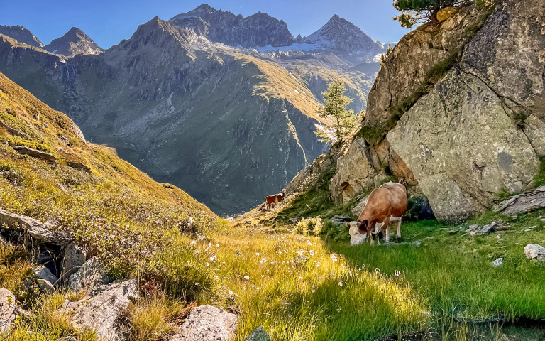 Während des Berliner Höhenwegs übernachten wir auf Berghütten in Matratzenlagern und verpflegen uns tagsüber selbst.