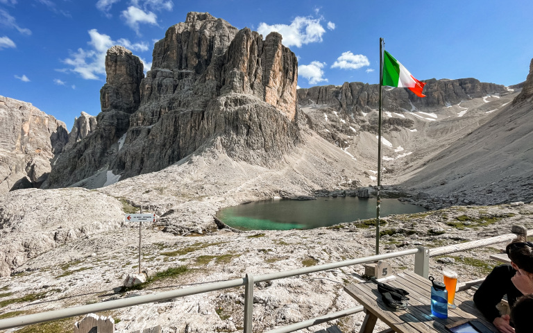(ca. 9,5 - 12,5 km und 1.000 Höhenmeter; Gehzeit: 7 h) - Tag 4: Pisciadu Hütte - Boè Hütte. Je nach Wetter wäre die Besteigung des Piz Boè (3.152 Meter) an diesem Tag möglich, da es ein kurzer Wandertag ist.