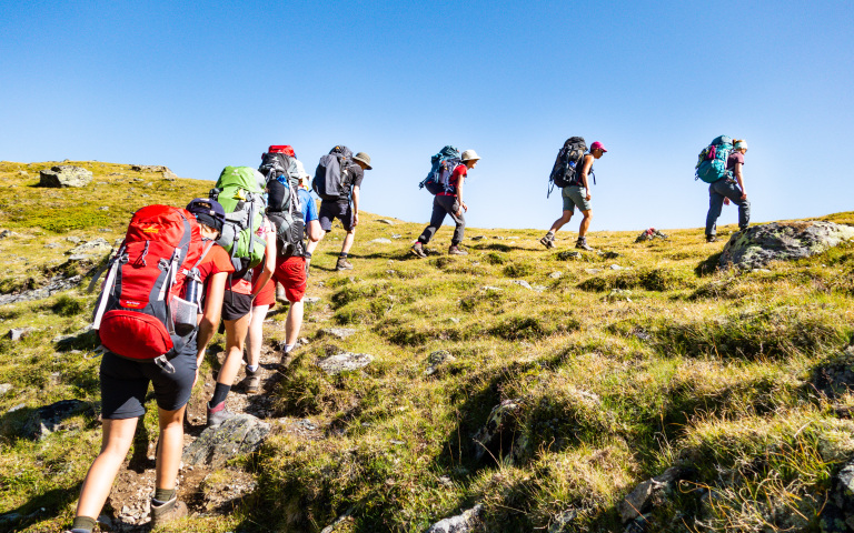 H3: Täglich wechselnde Unterkünfte. Mehr als 7 Tage Wandertage am Stück unterwegs. Kein Pausentag eingeplant. Es wird ein Tourenrucksack mit ca. 35 – 40l benötigt, in welchem die gesamte Kleidung und Ausrüstung untergebracht werden müssen. Zusätzlich muss die Marschverpflegung mit eingepackt werden. Ein Abbruch / Abstieg der Tour ist relativ einfach möglich.