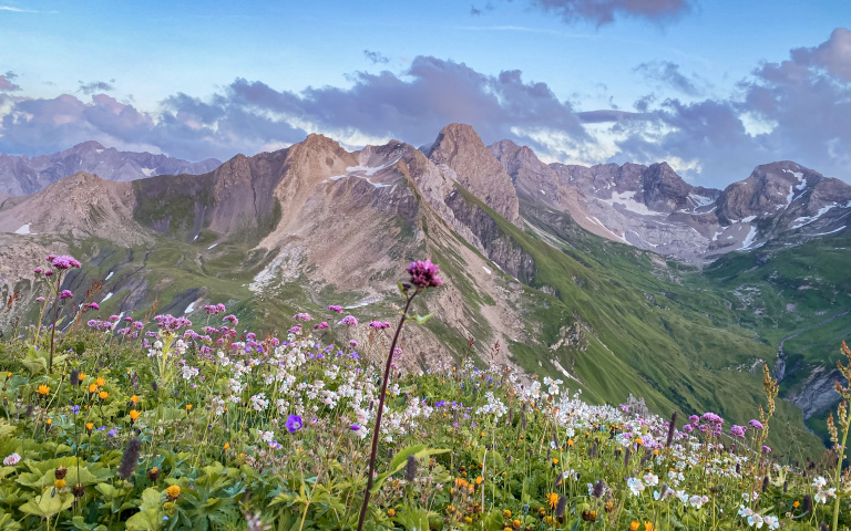 Während der einzelnen Etappen sind wir auf einem gewaltigen Dach unterwegs, ohne dass dazwischen allzu weit abgestiegen werden muss. Vorbei geht es an zahlreichen Gipfeln der Lechtaler Alpen, die im Jahr kaum eine handvoll Besucher zählen und je nach Können der Gruppe für eine Gipfelbesteigung einladen. Von oben eröffnet sich Dir ein fantastischer Blick über die Alpen und die großen Gipfel des Alpenhauptkamms. Selbst die markanten Punkte der Mehrtageswanderungen der Alpenüberquerung E5 lassen sich erkennen. Nicht selten entdecken wir Murmeltiere, Gämse und sogar Steinböcke.