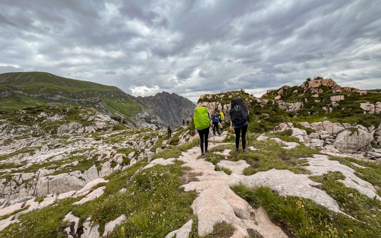 H2: Täglich wechselnde Unterkunft. Weniger als 7 Tage Wandertage am Stück unterwegs. Kein Pausentag eingeplant. Es wird ein Tourenrucksack mit ca. 35 - 40l benötigt, in welchem die gesamte Kleidung und Ausrüstung untergebracht werden müssen. Zusätzlich muss die Marschverpflegung mit eingepackt werden. Ein Abbruch / Abstieg der Tour ist relativ einfach möglich.