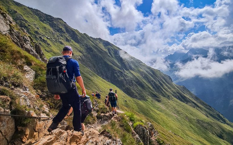 H3: Täglich wechselnde Unterkünfte. Mehr als 7 Tage Wandertage am Stück unterwegs. Kein Pausentag eingeplant. Es wird ein Tourenrucksack mit ca. 35 – 40l benötigt, in welchem die gesamte Kleidung und Ausrüstung untergebracht werden müssen. Zusätzlich muss die Marschverpflegung mit eingepackt werden. Ein Abbruch / Abstieg der Tour ist relativ einfach möglich.