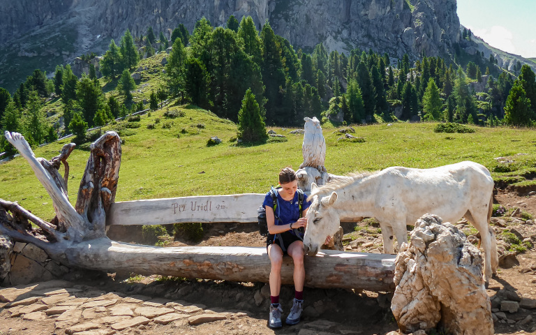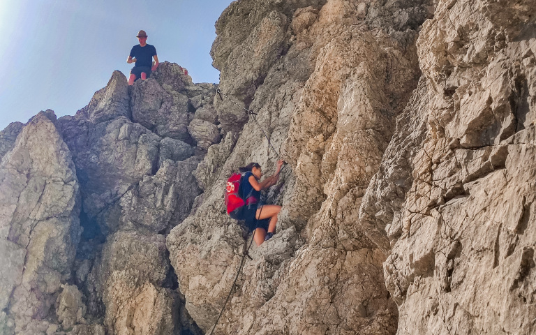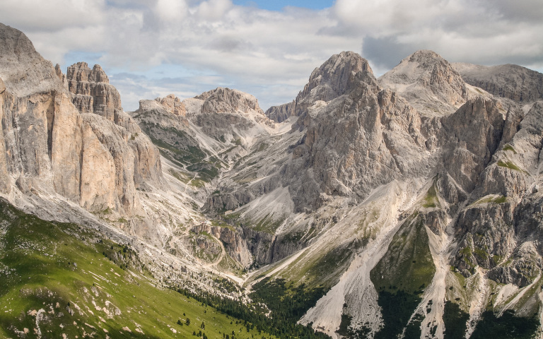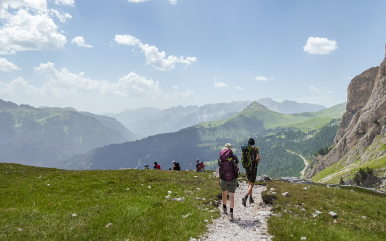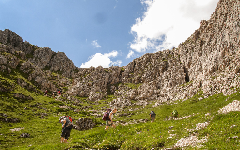Die Wanderung führt uns durch eine abwechslungsreiche Landschaft, die von sanften Wiesen bis hin zu schroffen Felswänden reicht. Dabei bieten sich uns immer wieder reizvolle Ausblicke auf die angrenzenden Gebirgsgruppen, wie die Pala, die Zillertaler Alpen und die Ortler Gruppe. Auf dieser Tour können wir die Schönheit der Dolomiten hautnah erleben und uns von der grandiosen Kulisse verzaubern lassen. In den Dolomiten werden uns immer wieder seilversicherte Passagen begegnen, es werden aber keine Klettersteigsets benötigt. Trittsicherheit ist hier ein absolute Voraussetzung.