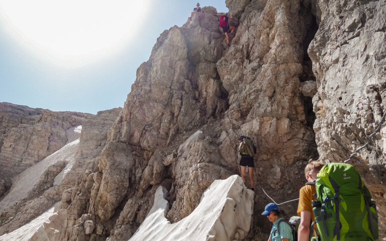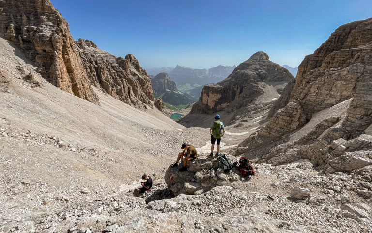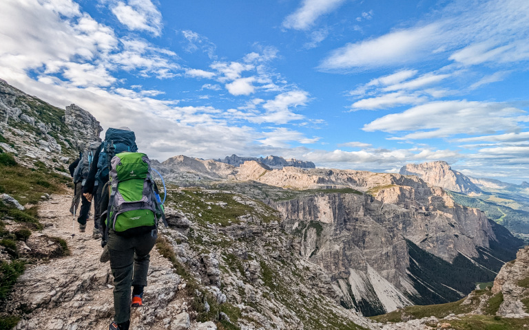 Dann probier‘ doch erstmal unserer Einstiegstouren, die Lechquellenrunde oder die Zugspitztour aus. Wenn du mit jungen Erwachsenen auf die Dolomiten Durchquerung gehen willst, passt eventuell unsere Ü18-Tour in die Dolomiten gut zu dir.