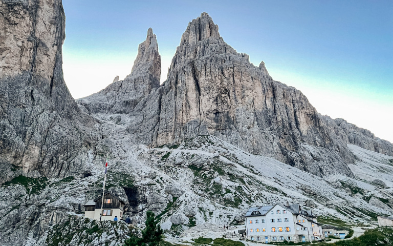 Die Hütten in den Dolomiten bieten vegane Verpflegung an. Je nach Versorgungslage kann es jedoch vorkommen, dass die veganen Gerichte einfacher gehalten sind. Darauf haben wir leider keinen direkten Einfluss – dennoch informieren wir die Hütten stets im Voraus, sobald sich vegane Gäste bei uns anmelden.