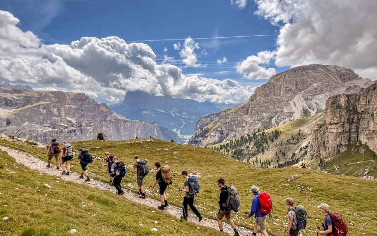 Unsere Dolomitendurchquerung ist speziell für Jugendliche zwischen 16 und 18 Jahren konzipiert. Wir übernachten in gemütlichen Berghütten in Matratzenlagern und genießen tagsüber unser selbst organisiertes Essen. Die Tour ist anspruchsvoll und erfordert eine gute Kondition und belohnt uns mit unvergesslichen Naturerlebnissen und fantastischen Felslandschaften.