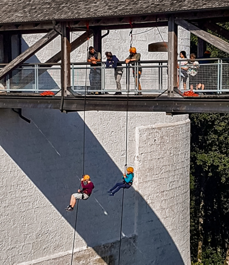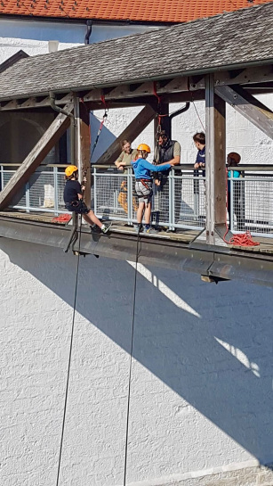 - Dienstag: Der Tag begann mit Bogenschießen – eine Aktivität, die Konzentration und Geschick forderte. Am Nachmittag folgte das Abseilen von der Burgbrücke, eine Herausforderung, die Mut und Vertrauen stärkte.