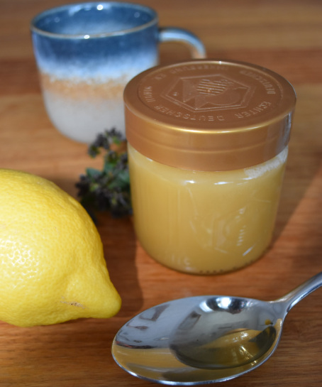 Thymian, Zitrone und Honig - diese Drei brauchst Du und schwupp ist der leckere natürliche Helfer bei Hustenreiz und Heiserkeit hergestellt.