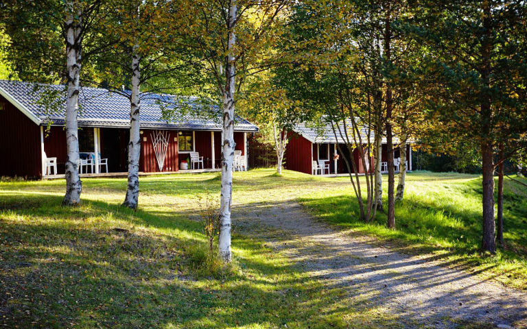 Wir belegen die Hütten mit bis zu 6 Personen immer gleichgeschlechtlich. Die zehn kleinen Schwedenhütten sind mit einer Pantry-Küche (Herd, Kühlschrank, Kaffeemaschine, Wasserkocher), WLAN, DU/WC und Sitzecke ausgestattet. Vor den Häusern kann man es sich auf der Veranda gemütlich machen. In zwei kleinen Schlafkammern steht jeweils ein Etagenbett. Wer möchte, kann auch im Alkoven über den Schlafräumen, wo zwei weitere Matratzen nebeneinander liegen, übernachten. Für die Reinigung der Hütten sorgt ihr am Ende der Woche selbst. Bettwäsche und Handtücher sind im Preis inbegriffen.