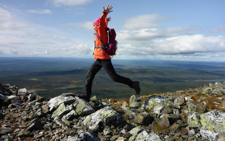 Über schmale Gebirgspfade – auf denen oft Rentiere unterwegs sind – wandern wir über die Baumgrenze hinaus bis zum Gipfel. Oben erwartet dich eine fantastische Aussicht über das Fjäll und hinüber nach Norwegen.