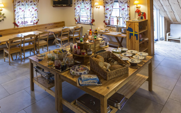 Das Küchenteam in Idre verwöhnt euch am Abend mit Vor-, Haupt- und Nachspeise. Wir servieren eine gute Hausmannskost. Vom Frühstücksbuffet kann sich jeder ein Lunchpaket zusammenstellen. Wenn du vegetarisch, vegan oder laktosefrei essen möchtest, sag uns das einfach direkt bei der Buchung. Bei Lebensmittelallergien oder Unverträglichkeiten schauen wir, was möglich ist. Bitte vor der Buchung mit uns absprechen.