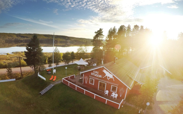 Unser kleines Hüttendorf „Idre Stugor“ bietet alles, was ein perfektes Outdoor-Camp braucht. Von hier starten wir zu Wanderungen, Kanutouren und Bike-Abenteuern – oder relaxen einfach am See, springen ins Wasser und genießen die Aussicht.