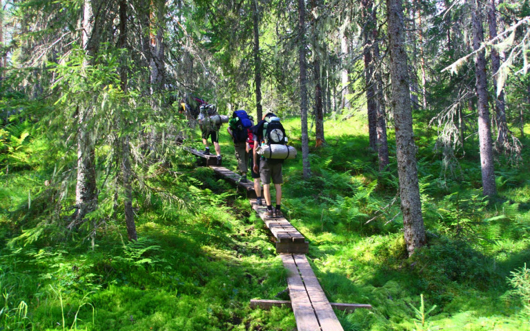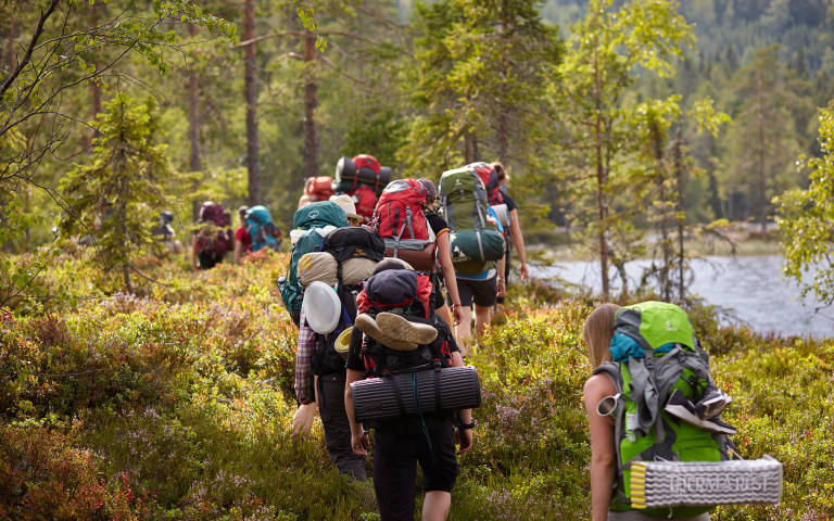 Am Samstagnachmittag kommst du im Aktivcamp in Idre an. Dort schlagen wir unser erstes Camp auf, lernen die Gruppe und Guides kennen und bereiten gemeinsam die Ausrüstung vor. Alles, was du für die erste Etappe brauchst, kommt in deinen Rucksack. Der Rest bleibt im Camp und wird zur Halbzeit nachgeliefert – wenn wir vom Wandern zum Kanufahren wechseln.