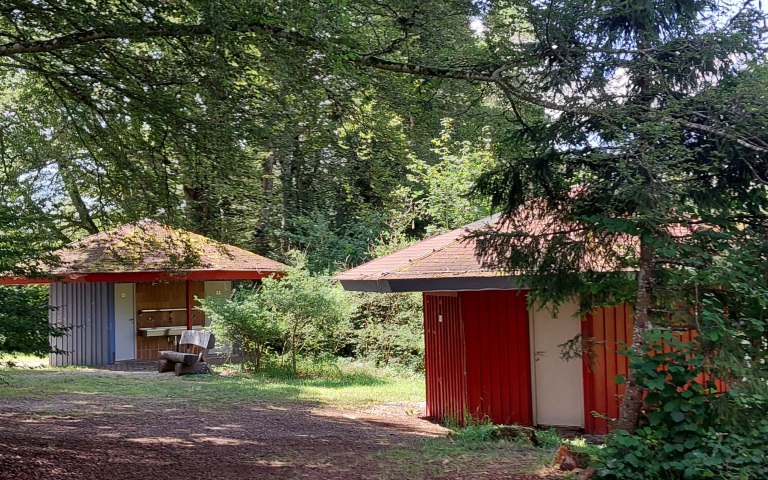 Wir haben ein Waschhaus, ein Toilettenhaus, eine Aufenthaltshütte sowie eine Feuerstelle. Einen Stromanschluss sowie eine Versorgung mit Warmwasser hat der Zeltplatz nicht.