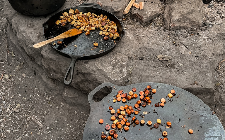 Trotz aller Wildnis werden wir unser Essen nicht selber suchen. Wir werden ganz normale Mahlzeiten kochen, die vegetarisch sein werden. Die ersten Mahlzeiten sind von uns vorgeplant, die weiteren planen wir gemeinsam. Dabei achten wir darauf, dass diese auch auf unserer Lagerküche umsetzbar sind, denn wir kochen über dem offenen Feuer.
