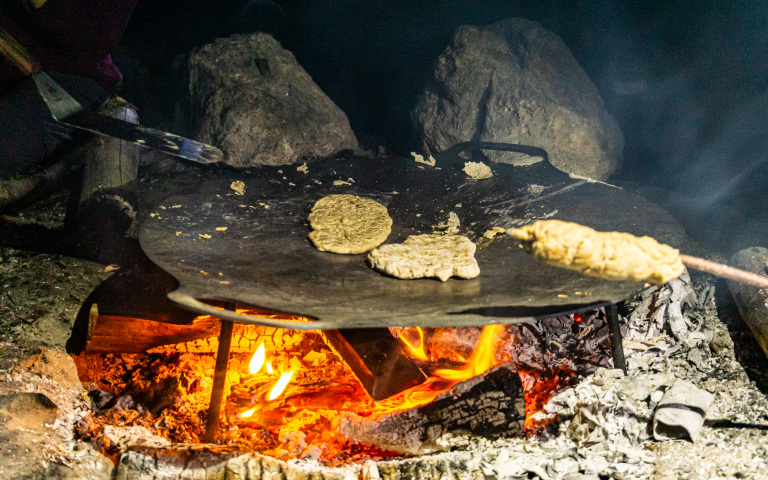 Ein rustikaler Aufenthalts-Pavillon macht uns wetterunabhängig, während einfache, funktionale Sanitäranlagen für Komfort sorgen. Der große Platz und zwei gemütliche Feuerstellen laden zu gemeinsamen Aktivitäten ein. Von hier aus starten wir unsere täglichen Entdeckungstouren in die wunderschöne Umgebung – unser Camp ist der ideale Ausgangspunkt für Abenteuer in der Natur.