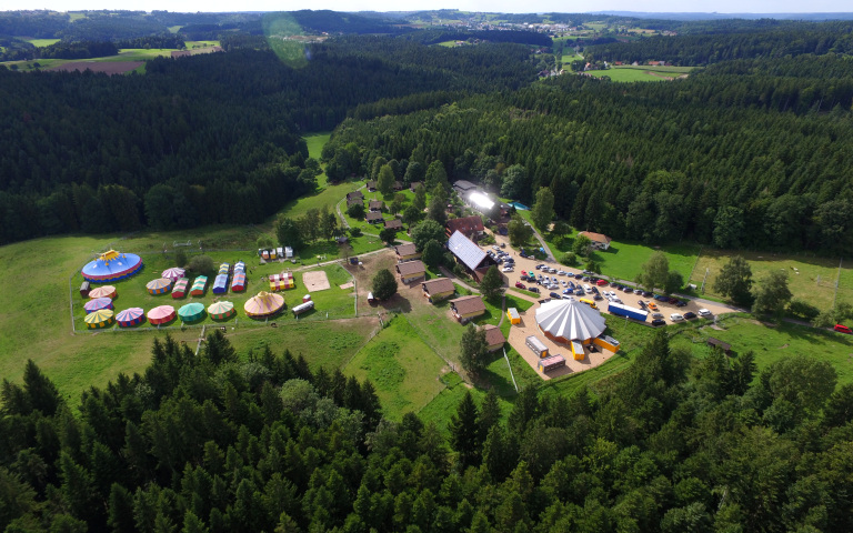Unsere Circusstadt liegt auf einer großen Wiese, mitten im Wald und direkt an einem kleinen Bach. Je nach Freizeit wohnst du hier entweder in einem unserer echten, bunten Circuszelte oder in einem unserer Ferienhäuser.